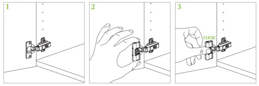 Montaż powoduje, że zawias zwalnia w ostatniej fazie zamykania zapobiegając trzaskaniu drzwiczek.