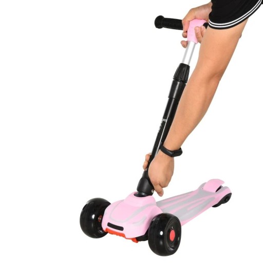 Oto świetna hulajnoga dla dzieci marki HOMCOM. Ma nowatorski kształt i wspaniałą kolorystykę. Przednie kółko jest grubsze i szersze, a dodatkowo miga na zasadzie indukcji magnetycznej. Podczas zabawy dziecko nieświadomie ćwiczy utrzymywanie równowagi, szybkość reakcji, zwinność i odwagę! Ta doskonała hulajnoga dziecięca będzie dobrym partnerem w rozwoju dzieci.