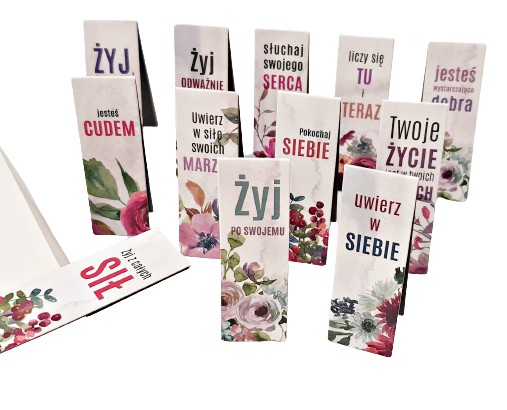 Każda zakładka, to nie jedynie zwykła zakładka. To przypomnienie o tym, co ważne. Na zakładkach znajdziesz ważne dla Ciebie lub dla osoby, którą chcesz nimi obdarować sentencję, taką jak np.: jesteś cudem, żyj z całych sił, czy uwierz w siłę swoich marzeń. Reszta niech pozostanie niespodzianką.