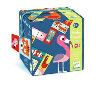 Przywróć ponadczasową grę Domino dzięki stylowemu zestawowi od Djeco! Klasyczna wersja gry domino należy dopasować zwierzątka lub ilość elementów na obrazku. Gra posiada 28 dwustronnych kartoników domina o wymiarach 10,5 cm x 5 cm.