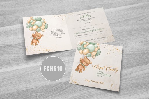 Zaproszenie na Chrzest Święty z imieniem dziecka.