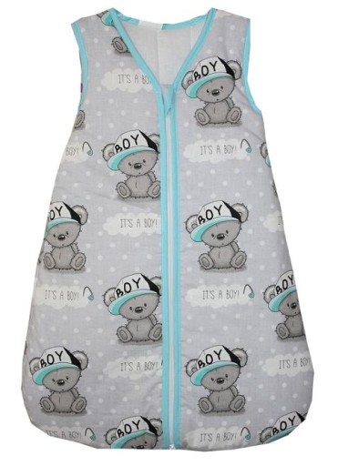 Śpiworek nie posiada rękawów, przez co nie nie krępuje ruchów dziecka i gwarantuje odpowiedni przewiew i higieniczne warunki snu.