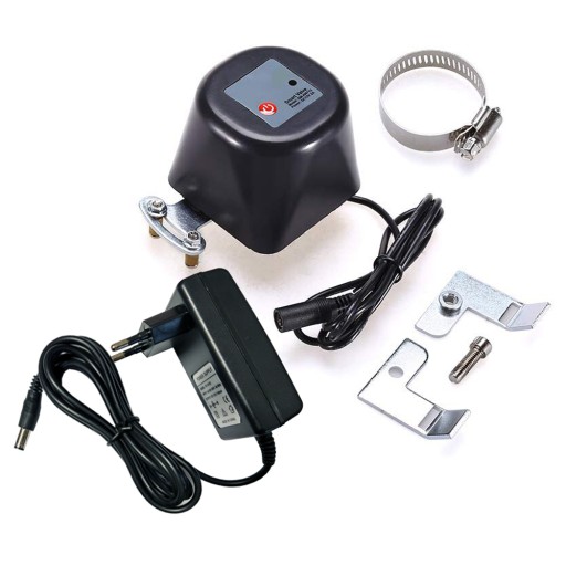 Urządzenie z serwomechanizmem do zastosowania jako napęd każdego zaworu kulowego z dźwignią, który po montażu umożliwi zdalne lub automatyczne otwieranie lub zamykanie zaworu za pomocą popularnej aplikacji Tuya/Smart Life z dowolnej lokalizacji na świecie!