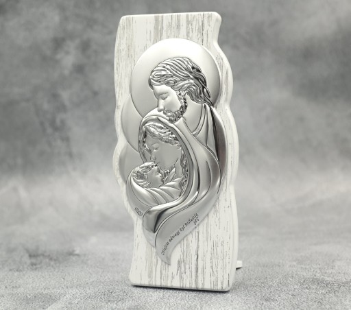 Obrazek to połączenie dwóch szlachetnych materiałów; drewna i srebra najwyżej jakości. Do produkcji wykorzystywany jest innowacyjny metal szlachetny o nazwie MIRO-SILVER. Wierzchnia warstwa obrazka to czyste srebro próby 999,95, która dzięki specjalnej technologii jest twardsza oraz odporniejsza na śniedzenie i zarysowania w porównaniu z tradycyjnymi metodami srebrzenia. Dodatkowe zabezpieczenie w postaci specjalnego lakieru daje pewność, że obrazek będzie odbijał światło i pięknie wyglądał. Specjalna warstwa klejąca łącząca obrazek wraz z drewnem gwarantuje trwałość na wiele lat. Całość wykonania produktu potwierdza dołączony do produktu CERTYFIKAT JAKOŚCI.