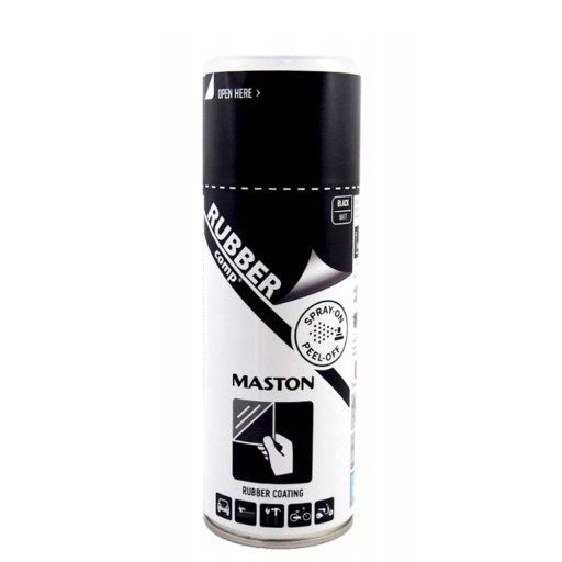 Guma w sprayu Maston RUBBER Comp, dzięki której w łatwy sposób zmienisz kolor najprzeróżniejszych powierzchni: metalowych, plastikowych i innych. Po nałożeniu kilku warstw powstaje równomierna, gładka powierzchnia, stosunkowo odporna na uszkodzenia mechaniczne, którą w łatwy sposób, poprzez zerwanie można usunąć.