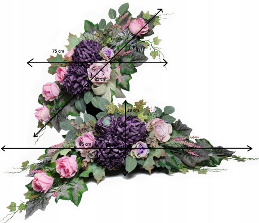 - Bukiet wys. ok 85 x szer. ok 75 cm (sposób mierzenia na rysunku)
