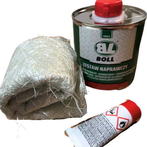 BOLL zestaw naprawczy składa się z żywicy poliestrowej (242 g), utwardzacza (8 g) oraz maty szklanej (0,25 m2). Służy zarówno do wypełniania znacznych ubytków materiału w karoseriach samochodowych, łodziach, przyczepach itp. jak i do wzmacniania i usztywniania konstrukcji naprawianych elementów. Żywica posiada bardzo dobrą przyczepność do metalu, powierzchni plastikowych, stali, szkła, drewna i betonu. Jest odporna na temperaturę do 80°C, wpływ czynników atmosferycznych, benzyny, smarów, olejów, rozcieńczonych kwasów i zasad. Cechuje się dużą sprężystością i krótkim czasem utwardzenia. Po utwardzeniu posiada bardzo dużą wytrzymałość mechaniczną, może być szlifowana i pokrywana dowolnymi szpachlami poliestrowymi.