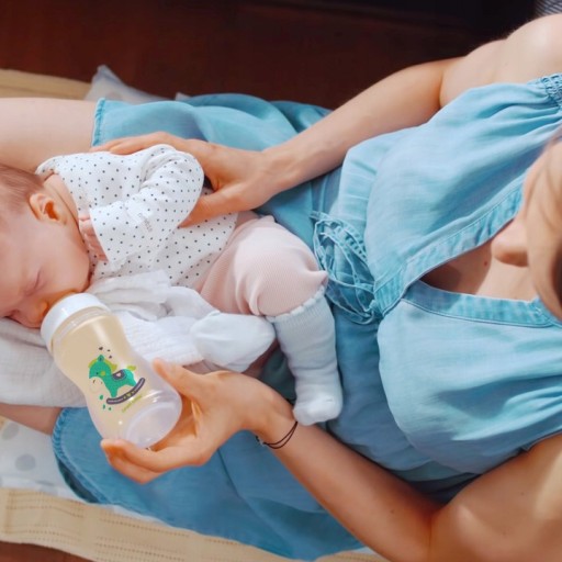 Smoczek przypomina kształtem pierś mamy, dzięki czemu umożliwia łączenie karmienia naturalnego z karmieniem butelką.