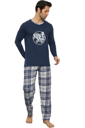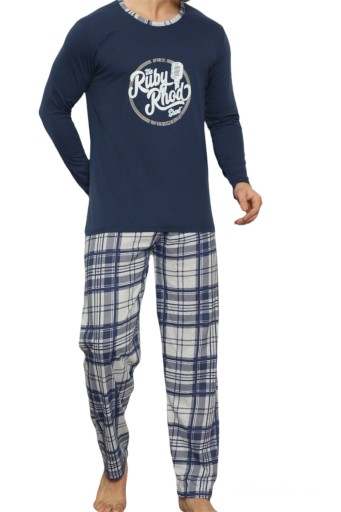 BAWEŁNIANA MĘSKA PIŻAMA Z DŁUGI RĘKAWEM I DŁUGIMI SPODNIAMI