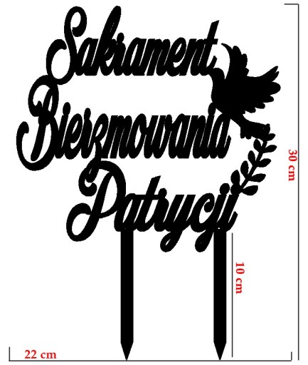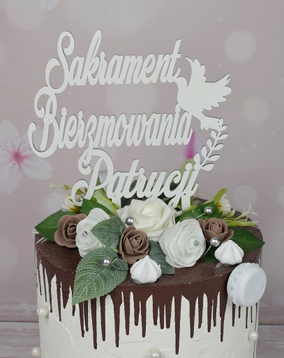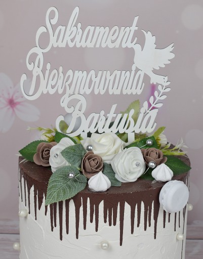 Personalizowany topper na tort z okazji przyjęcia sakramentu Bierzmowania.