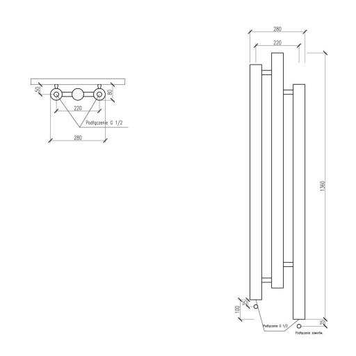SIZER to grzejnik dekoracyjny wykony z rur fi 60, dzięki swojej budowie staje się głównym punktem łazienki, pokoju czy korytarza. Współpracuje z grzałką elektryczną (prawa strona) - nie zawarta w zestawie.