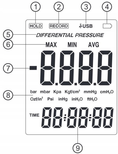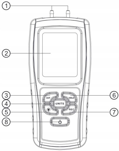 - Klawisz trybu DIF - do wyświetlania różnicy ciśnień