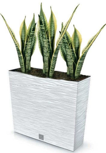 Nowoczesna donica typu wysoka skrzynka w kolorze białego matu. W zestawie z wkładem posiadającym praktyczne rączki do wyciągania.