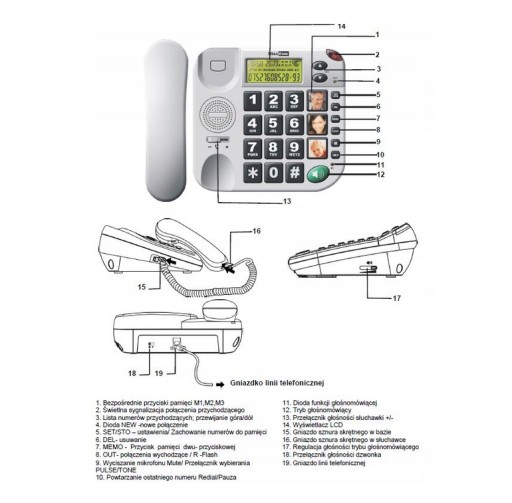 - Pamięć numerów przychodzących: 20