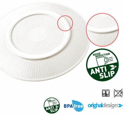 Wszystkie elementy zestawu wyposażone są w system antypoślizgowy ANTI SLIP. Każde naczynie od spodu podklejone jest gumą. To sprawia że naczynia są stabilne a użytkowanie w trakcie podróży jest w pełni bezpieczne i komfortowe.