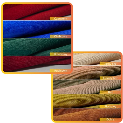 ✅ Łatwość pielęgnacji - Sztruksowy materiał jest prosty w utrzymaniu czystości – wystarczy go przetrzeć wilgotną ściereczką lub prać ręcznie w letniej wodzie. Materiał jest odporny na pękanie i łuszczenie, co zapewnia długotrwałą estetykę.