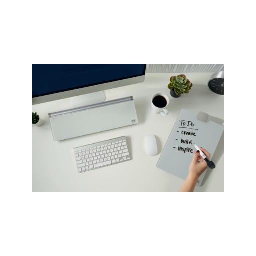 Szklana tabliczka suchościeralna Nobo na biurko, pozioma w kolorze białym