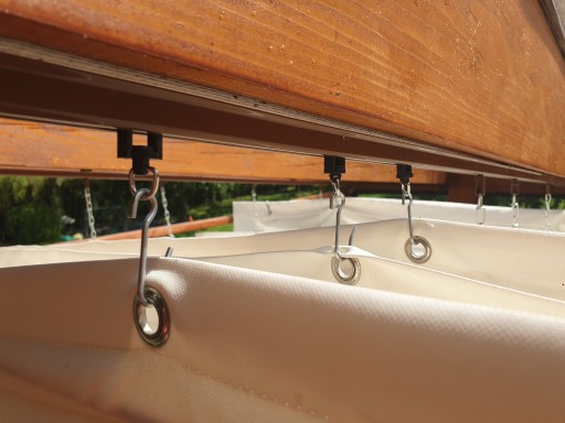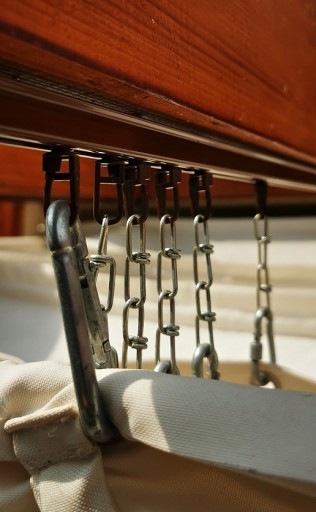 Wysokość rolety może być regulowana za pomocą łańcuszków mocujących. W przypadku braku górnej zabudowy, roleta powinna być zamocowana pod lekkim skosem, dzięki czemu w czasie deszczu woda swobodnie spłynie po tkaninie.