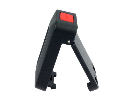 - czarny, umiejscowiony na dole uchwytu, umożliwia odblokowanie go od paska