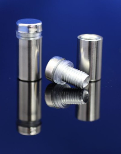 Stalowy dystans montażowy służący do trwałego i estetycznego mocowania tafli szkła, plexi płyt z Dibonda, PCV do ściany.