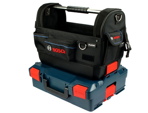 Profesjonalna sztywna torba narzędziowa firmy BOSCH została wykonana z bardzo trwałej, odpornej na uszkodzenia i nieprzemakalnej tkaniny typu Poliester 1000D.