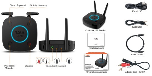 Urządzenie zapewnia również pełne wsparcie dla technologii aptX i aptX-LL (low latency), które nie tylko gwarantują bezstratną jakość odtwarzanego materiału. Zadaniem tych systemów jest gwarantowanie braku opóźnień i braku zrywania podczas odtwarzania ulubionych plików dźwiękowych. 1Mii B06 Pro posiada (tak jak wersja standardowa) przełącznik 3D Audio, tryb ten jest aktywny, gdy podświetlenie LED jest w kolorze zielonym. Rozwiązanie to poprawia dźwięk, dodając efekty przestrzenne - ciekawie współpracujące z systemami kina domowego (od 5.1 wzwyż).