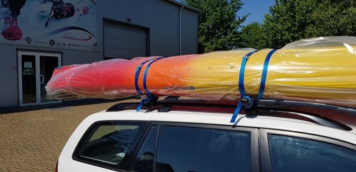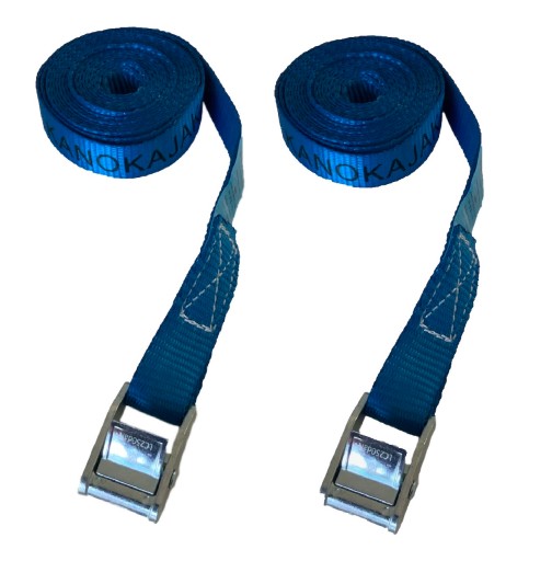 Komplet solidnych pasów transportowych z klamra samozaciskową 3,5m idealne do zabezpieczenia kajaka na czas transportu. Szerokość pasa: 25mm