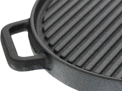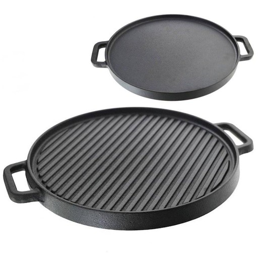 Dwustronna żeliwna patelnia płyta grillowa ruszt 30 cm ciężka i stylowa.