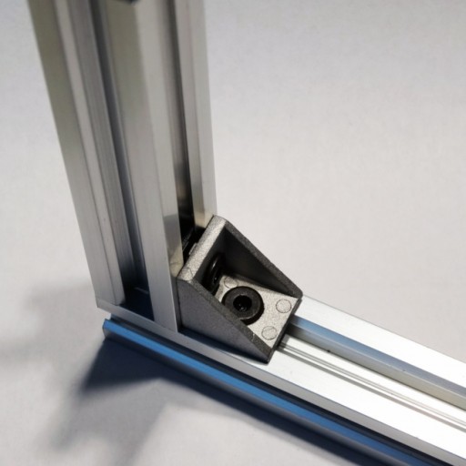 Wsporniki narożne mają wystające zęby (doskonałe do blokowania w gnieździe). W przypadku montażu w tym kierunku należy użyć śruby niskoprofilowej M8 i nakrętki trójnikowej M5 . Jeśli potrzebujesz użyć odlewanych narożników prostopadłych do szyny liniowej V-Slot , możesz albo odwrócić nakrętkę teową M5 do góry nogami w torze szyny liniowej V-Slot (zapewni to, że śruba będzie chwytać gwinty szyny M5 Tee Nut ) lub możesz wyszlifować zaczepy od spodu złącza narożnego.