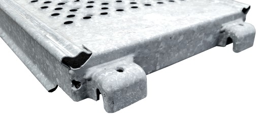 Pomosty wykonano ze stali, którą pokryto ocynkiem. Jest to ochrona przed procesem korozji. Podesty cechują się dużą wytrzymałością i trwałością. Mogą znosić spore obciążenia.