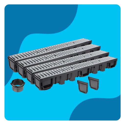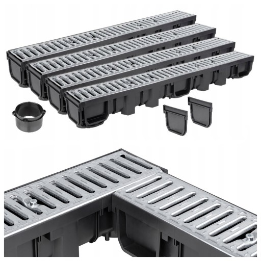 - 4 x Odwodnienie liniowe korytko plastikowe, ruszt metalowy H=105 mm