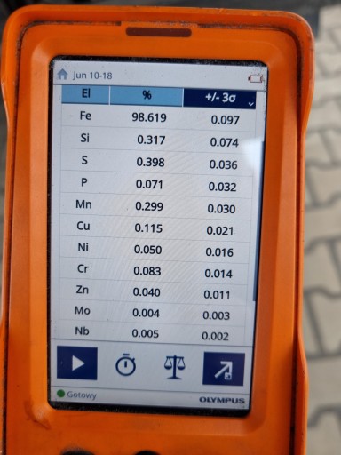 Skład chemiczny blachy zmierzony został staloskopem RTG , a zdjęcie zostało umieszczone w katalogu zdjęć