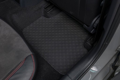- Spód został pokryty gumowymi wypustkami, które znacząco wydłużają żywotność materiału oraz zabezpieczają przed przesuwaniem się dywaników podczas jazdy samochodem.