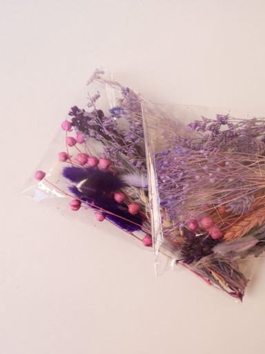 Zestawy suszonych i stabilizowanych kwiatków w fioletowych kolorach to idealne rozwiązanie dla osób poszukujących drobnych elementów dekoracyjnych do różnych prac artystycznych.
