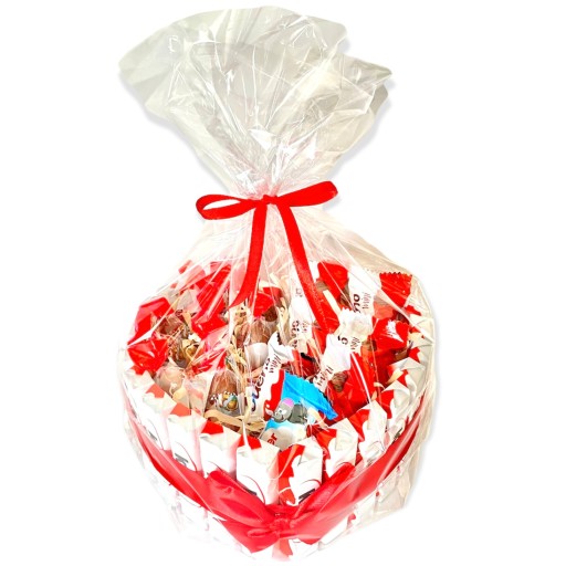 - Dodatkowo zapakowany w przezroczystą folię z kokardą
