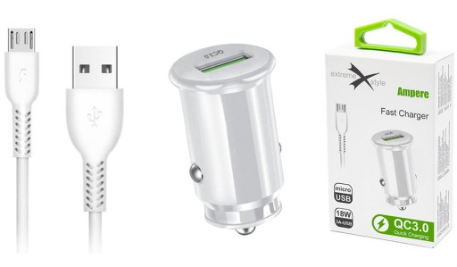 Ładowarka z gniazdem USB i rozłączanym kablem to niezwykle wygodne rozwiązanie, w czasie jazdy samochodem. Ładowarka samochodowa marki eXtremestyle® posiada technologię Quick Charge 3.0 - najbardziej popularny i rozpowszechniony system szybkiego ładowania telefonów. W tym wariancie do uniwersalnej ładowarki USB został dołączony wzmocniony kabel micro USB o długości 1 m.