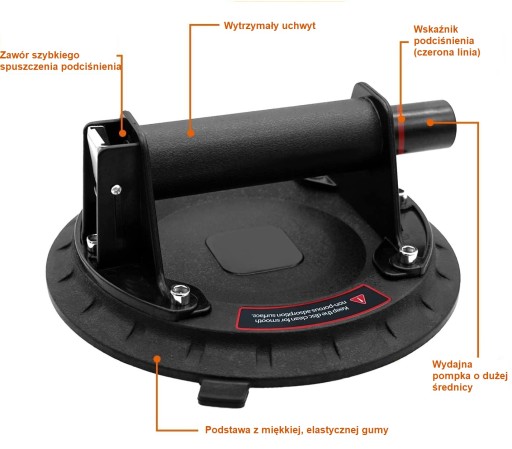 - przyssawka 200 mm z uchwytem i pompką próżniową,