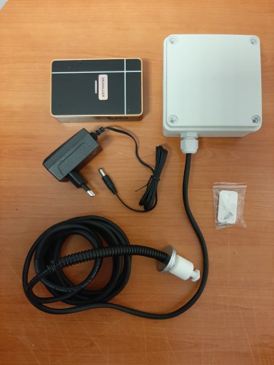 - bezprzewodowy nadajnik odporny na warunki atmosferyczne z przewodem o długości 3 metrów zakończony sondą pływakową, którą należy umieścić w zbiorniku szamba,