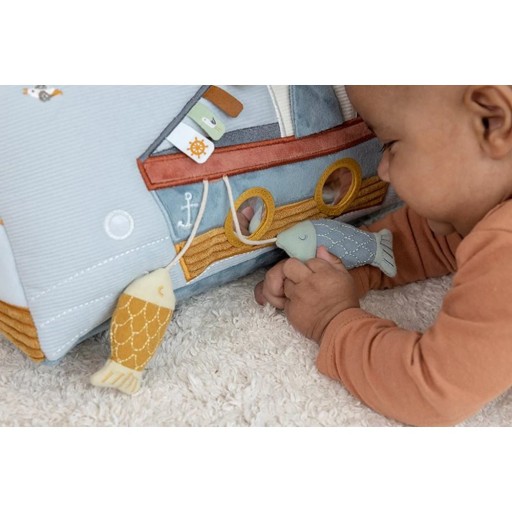 Trójkąt edukacyjny Little Dutch z kolekcji Sailors Bay. Wszechstronny trójkąt aktywności zabierze Twojego malucha w ciekawą przygodę. Świetnie sprawdzi się podczas leżenia na brzuszku, może stanowić pewnego rodzaju podparcie. Zapewni świetną zabawę i pozwali maluchowi odkrywać różne faktury i struktury materiału, posiada metki, wypustki, które maluchy uwielbiają. Trójkąta ma wiele, ciekawych elementów, w tym uwielbiane przez dzieci lustereczko. Turlanie zachęci malucha do aktywnego ruchu, w tym raczkowania. Może również posłużyć jako poduszeczka.