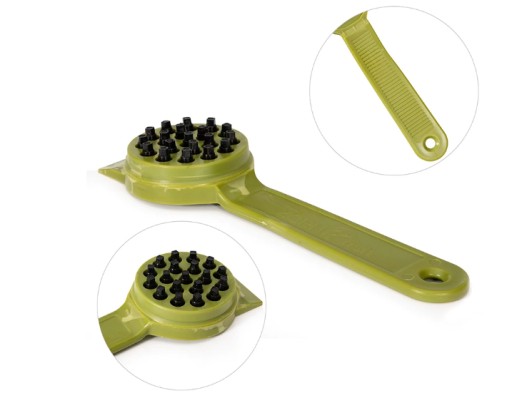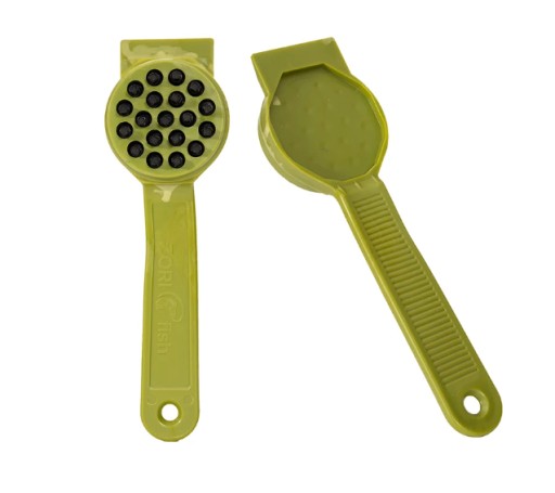 Praktyczna Skrobaczka do ryb przydatna w kuchni i nad wodą. Idealna do skrobania okoni. Specjalnie wyprofilowana rączka zapewnia mocny chwyt skrobaka. Skrobak całkowicie usuwa łuski, nawet w najbardziej problematycznych miejsc, a skóra ryby pozostaje w stanie nienaruszonym.