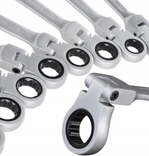 ✅Klucz płasko oczkowy z grzechotką łamaną wykonany ze stali chromowo-wanadowej.