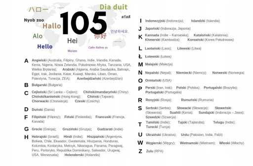 - cejloński, chiński (kantoński, mandaryński, Tajwan), chorwacki, czeski