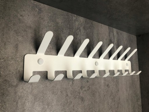Uchwyt do wieszania został pomalowany proszkowo na biały matowy kolor, dlatego wygląda on tak gustownie.
