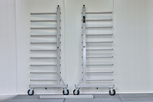 Mobilne wózki lakiernicze naszej produkcją charakteryzuje się sprawdzoną mocną i stabilną konstrukcją, posiadającą łatwą i szybką regulację rozstawu ramion.