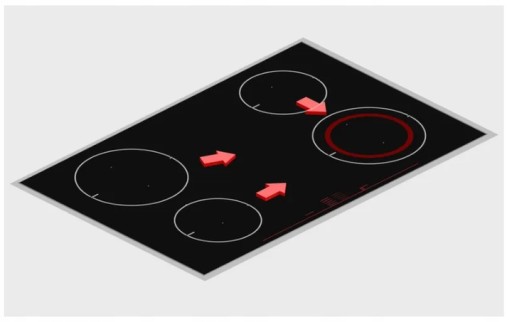 - Funkcja QuickStart: po włączeniu płyta automatycznie wykryje strefę grzewczą, na której umieszczono garnek (przed jej uruchomieniem).