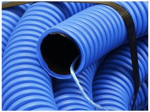 Rury osłonowe dwuwarstwowe giętkie do prowadzenia przewodów w gruncie. Rura zabezpiecza przewód przed warunkami atmosferycznymi, ułatwia wymianę przewodów, chroni przewód przed uszkodzeniami mechanicznymi.
