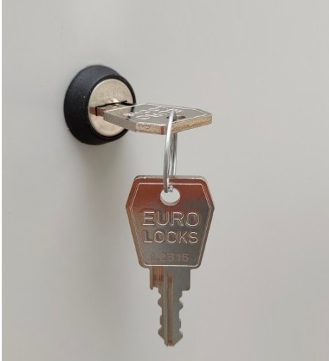 Każda komora szafy została wyposażona zamek kluczowy z ryglowaniem w 1 pkt działający w systemie Master z kompletem dwóch indywidualnych kluczy.