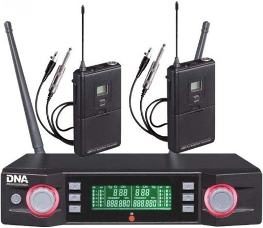 DNA VM – DUAL INSTRUMENTAL SET to wysokiej jakości bezprzewodowy system mikrofonowy oparty na technologii cyfrowej. Zestaw składa się z odbiornika (UHF), dwóch nadajników przypaskowych (tzw. „bodypadów” lub „beltpacków”) oraz przewodów, które można wpiąć bezpośrednio do instrumentów wyposażonych w wejście typu jack 6,3 mm (np. gitara elektryczna, basowa). Set idealnie sprawdza się podczas niewielkich koncertów i występów na żywo, na których zachodzi potrzeba zrezygnowania z przewodów ograniczających poruszanie się artystów na scenie. Nadajniki wyposażone zostały w czytelny wyświetlacz LCD oraz port IR (odbiornik podczerwieni) umożliwiający synchronizację sygnału wychodzącego z odbiornikiem. W górnej części korpusu znajduje się wskaźnik częstotliwości i poziomu zasilania, antena do komunikacji bezprzewodowej oraz gniazdo sygnału. Urządzenia zasilają dwie baterie typu AA, które pozwalają na pracę mikrofonów nawet przez 8 godzin!