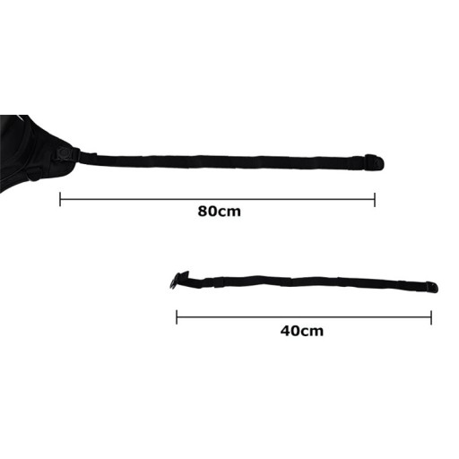 - Mocowana poprzez regulowane paski na udzie i w pasie.