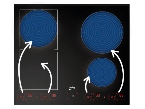 Płyta sterowana jest elektronicznie. Ustaw wygodnie wybrane funkcje i temperaturę grzania pól grzewczych za pomocą dotyku. Łatwo i wygodnie z BEKO.